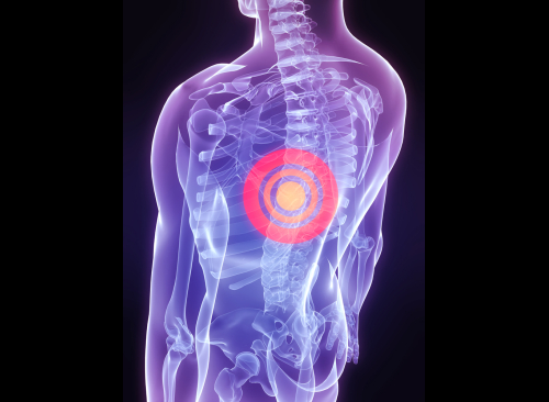 Rozpoczęliśmy wizytę od sprawdzenia łopatki, w miejscu, które zazwyczaj reaguje bólem w przypadku przeciążenia mięśni obręczy barkowej. Zbadaliśmy również ruchomość szyi i tkliwość tkanek. Niepokojące objawy można było znaleźć w okolicy obojczyka, a dokładnie wyrostka kruczego łopatki. Tkanka w tym rejonie była opuchnięta, o podwyższonej temperaturze. Podczas palpacji odkryłam brak mobilności w obydwu stawach obojczyka jak również ostrą spastykę i stan zapalny przyczepu mięśnia piersiowego mniejszego. Napięcie i stan zapalny wpływał na mięśnie kończyny górnej i stan ścięgna mięśnia głowy krótkiej bicepsa oraz mięsień kruczo ramienny, jakkolwiek duża spastyka i skrócenie przyczepu mięśnia piersiowego mniejszego było głównym czynnikiem, który należało wziąć pod uwagę w leczeniu bólu. On bowiem spowodował rotację łopatki ku przodowi co uaktywniło punkt spustowy w okolicy kąta górnego łopatki. Przyczep mięśnia piersiowego większego również maksymalnie napięty jakkolwiek jego stan wydaje się reakcją na stan tkanek położonych głębiej. Żebra po stronie zajętej nieruchome, mieśnie międzyżebrowe oraz miesień zębaty przedni bardzo sensytywne, węzeł chłonny pachowy twardy, znacznie powiększony i ocieplony.